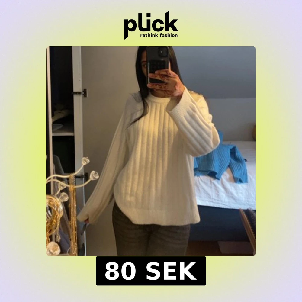 Säljer en vit stickad tröja med ribbad struktur💞S