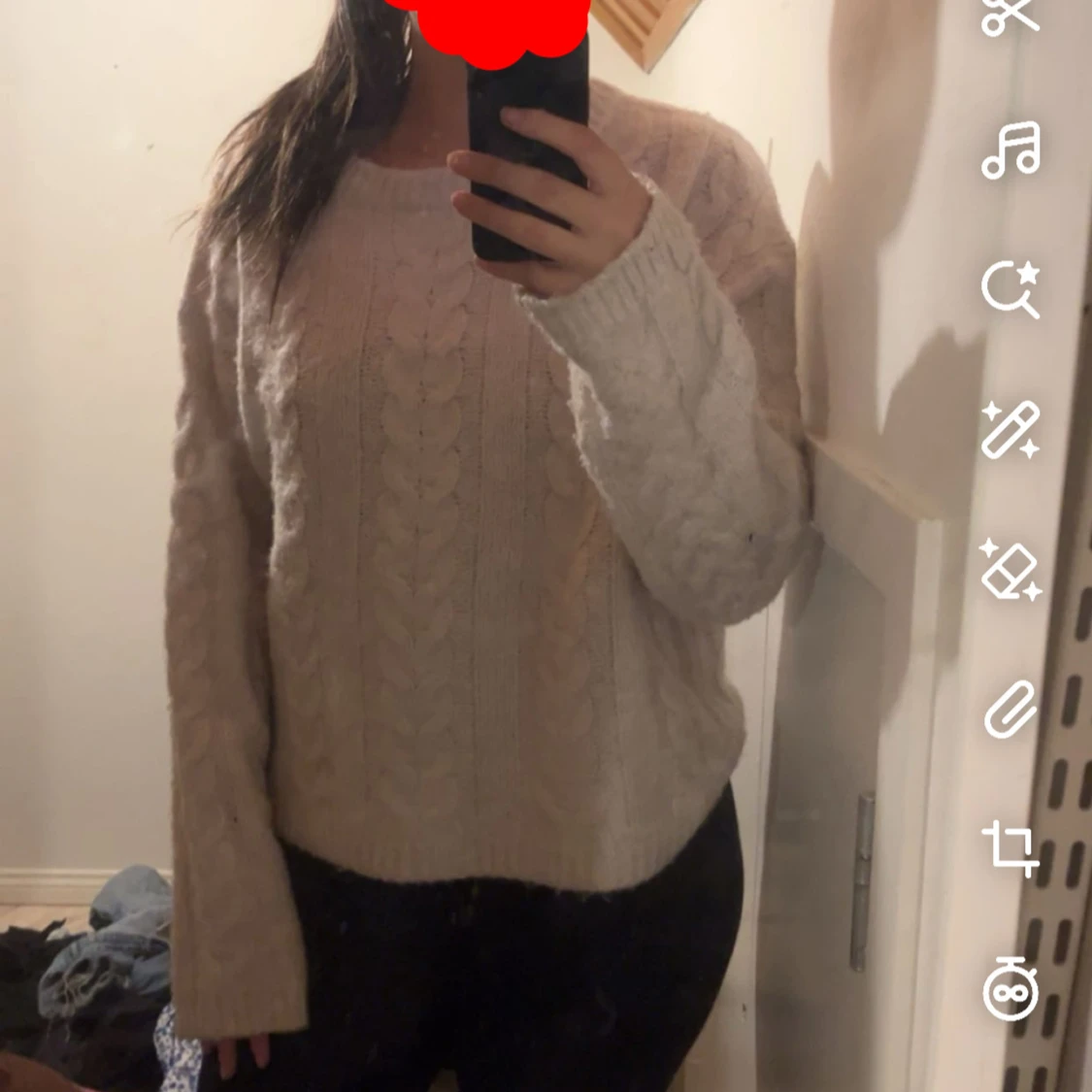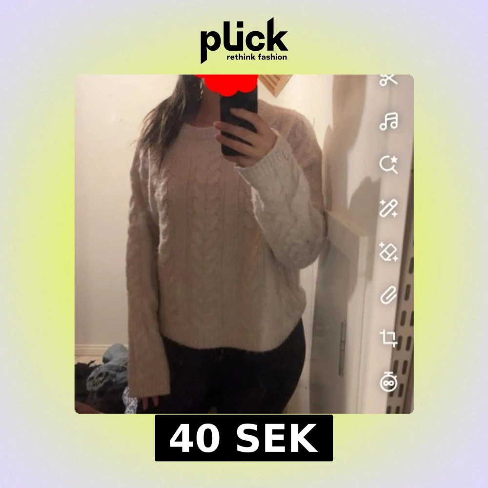 Mysig vit kabelstickad tröja med lång ärm och rund hals. Tröjan har en loose passform och är perfekt för kyliga dagar. Snyggt stickat mönster som ger en klassisk och stilren look.