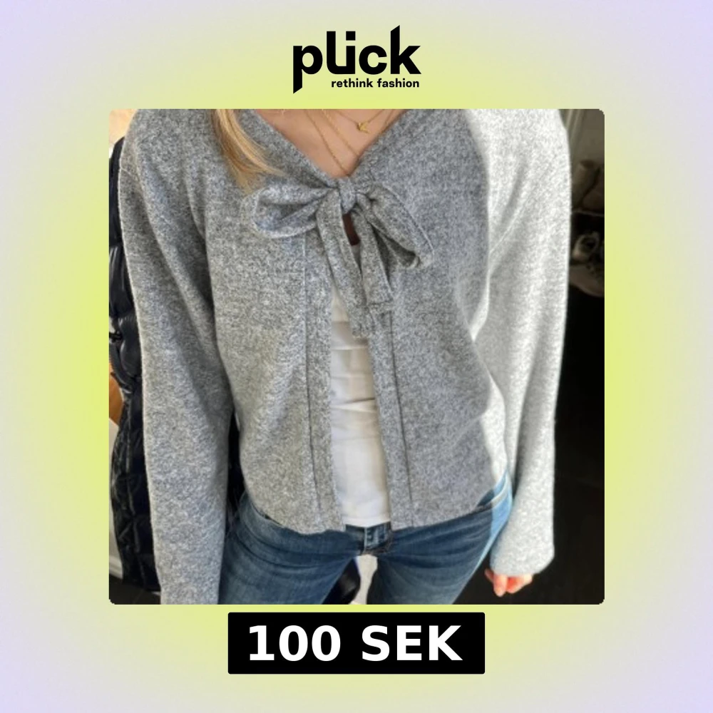 Mysig grå kofta i mjukt material med lång ärm och stor rosett framtill. Perfekt att slänga över en topp för en avslappnad men ändå söt look. Enkel att matcha med jeans eller kjol.
