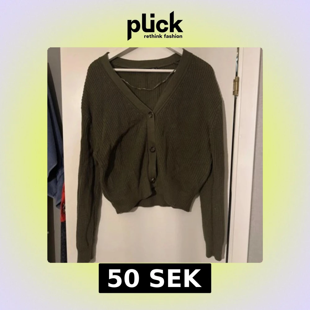 Olivgrön stickad kofta med knappar