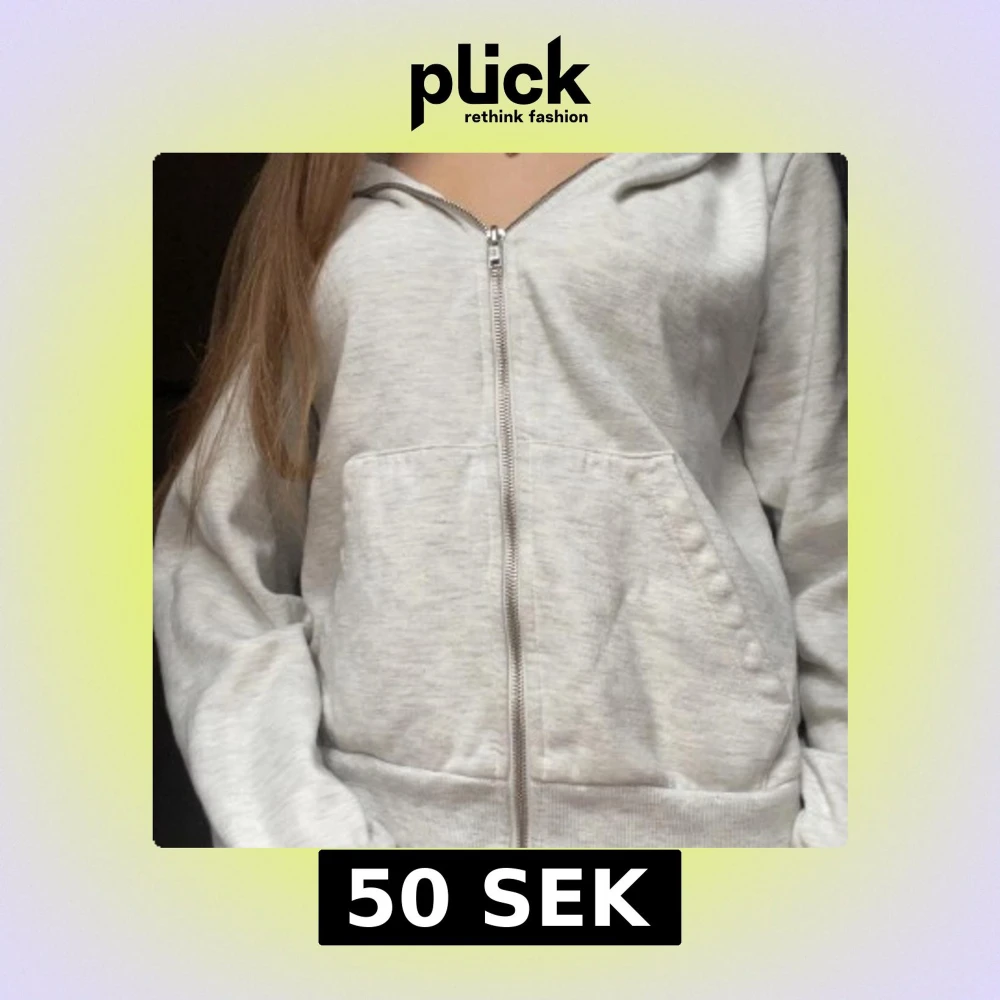 Säljer en stilren grå hoodie med dragkedja och fickor framtill. Perfekt för en avslappnad look. Den har långa ärmar och ribbade muddar för extra komfort. Pris kan diskuteras
