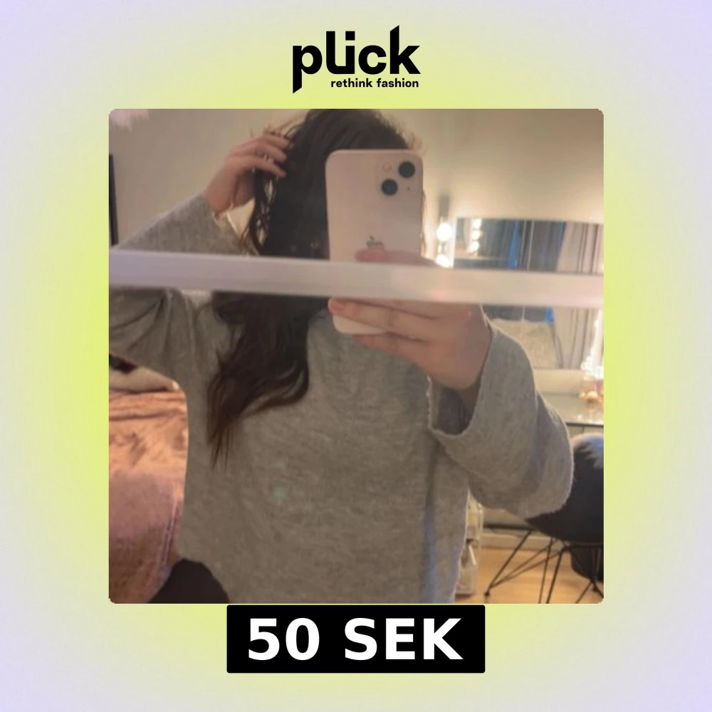 Mysig ljusgrå stickad tröja med lång ärm och avslappnad stil, storlek M men passar även S