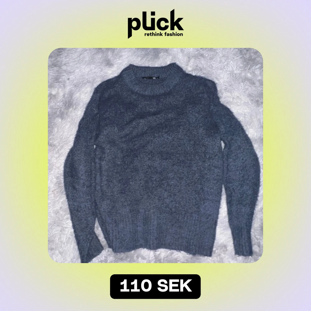 Säljer en supermysig blå stickad tröja i bra skick. Perfekt för kalla höst- och vinterdagar. Tröjan har långa ärmar och en klassisk rund halsringning. Den är både stilren och bekväm, perfekt för att hålla värmen i stil. Passar till både vardag och mysiga hemmakvällar