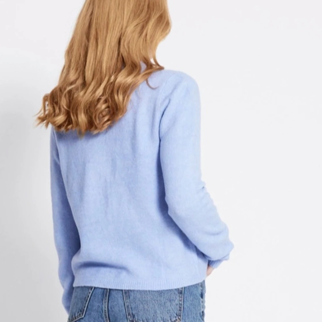 Superfin ljusblå kofta med rund hals och knappar framtill. Tröjan har lång ärm och är stickad i mjukt material som känns skönt mot huden. Perfekt att slänga över en t-shirt och matcha med jeans för en chill look. Storlek M. Oanvänd.