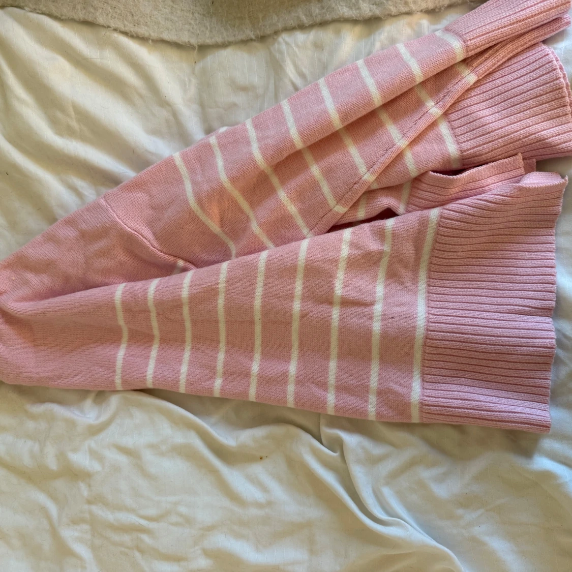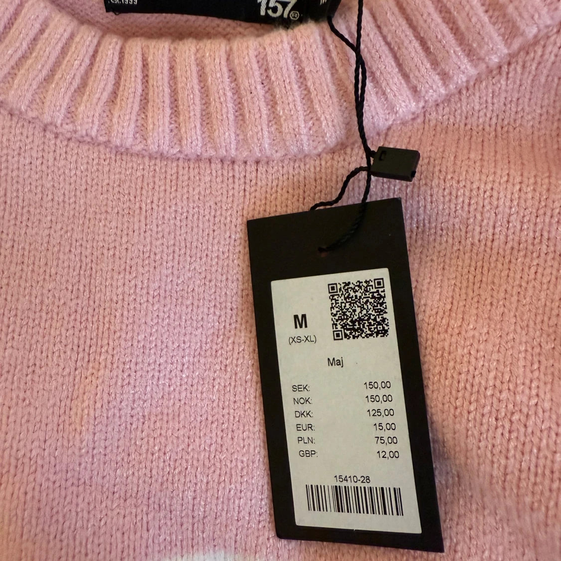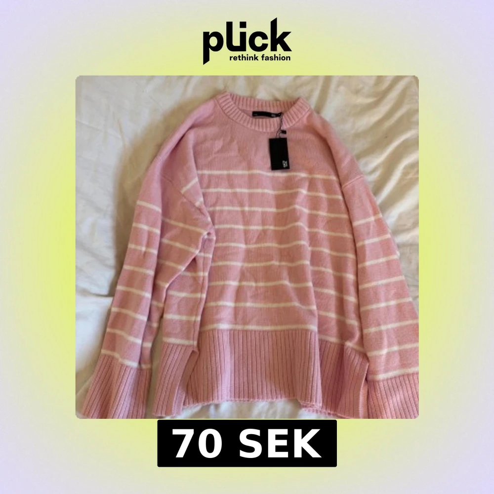 Superfin rosa stickad tröja från 157 med vita sträck. Helt ny med prislapp kvar. Säljer p.g.a att jag inte har fått användning av den. Storlek M