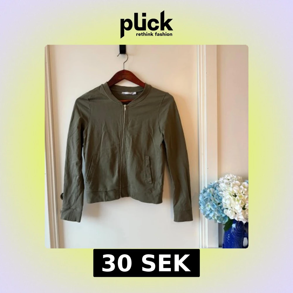 Olivgrön kofta med bomberjacka stil, med rund hals och dragkedja framtill. Jackan har två sidofickor och är tillverkad i mjuk bomull. Enkel och clean design som funkar till många olika stilar. Långärmad och med normal passform.