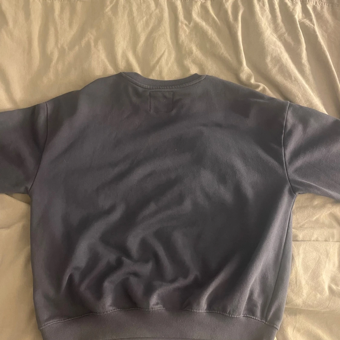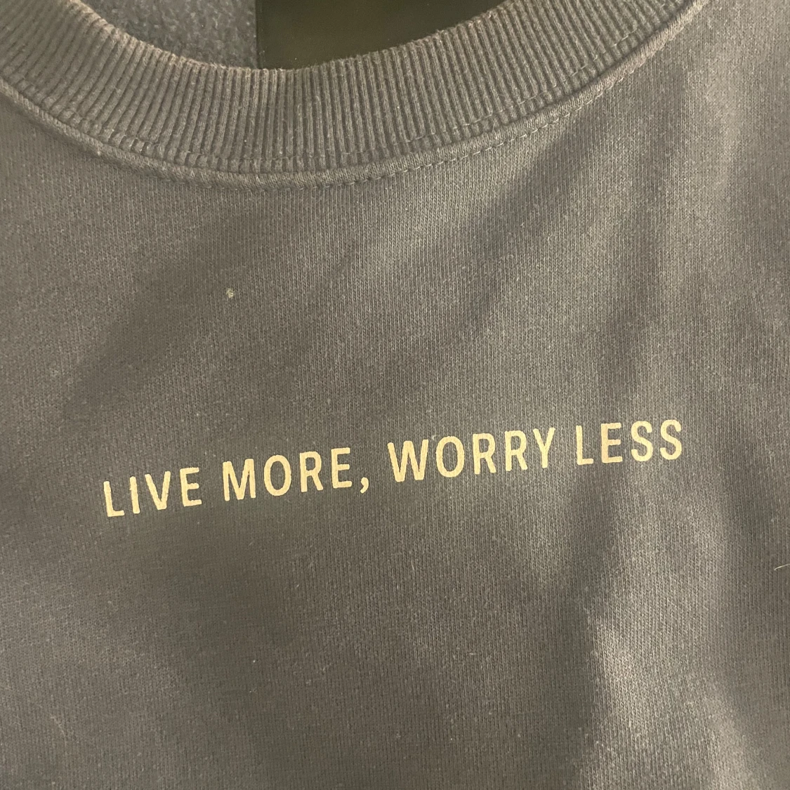 Säljer en mörkgrå sweatshirt med text på bröstet.❣️