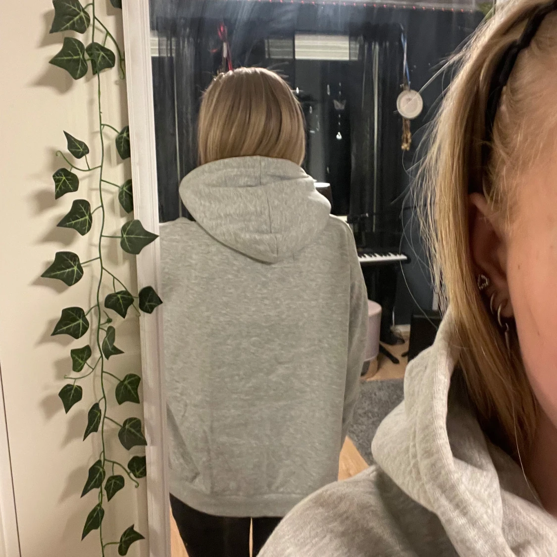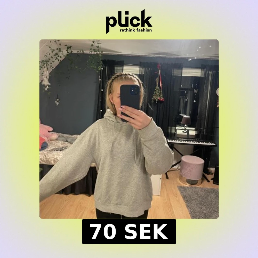 Säljer en enkel och stilren grå hoodie med luva och snören. Använd några gånger men fortfarande bra skick.