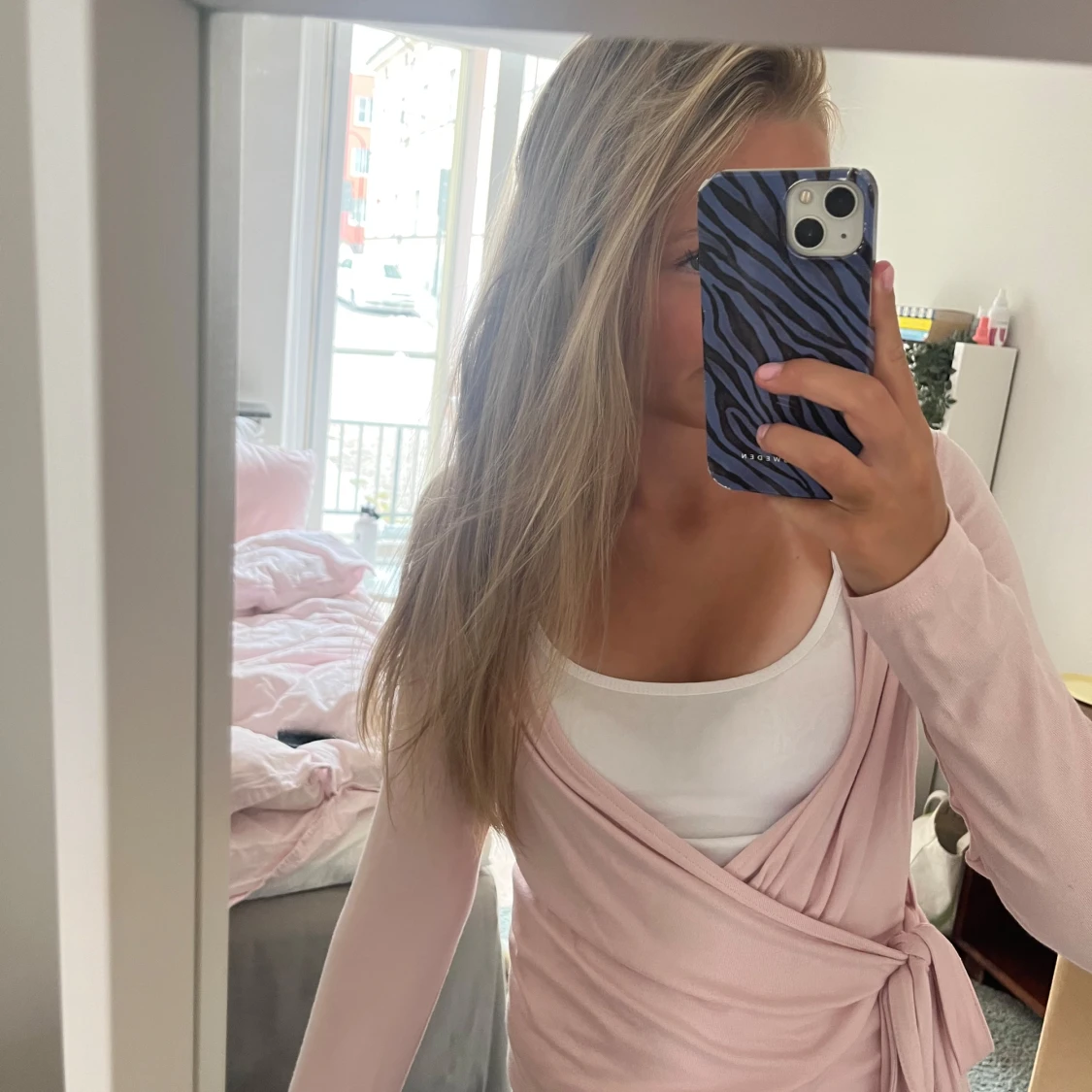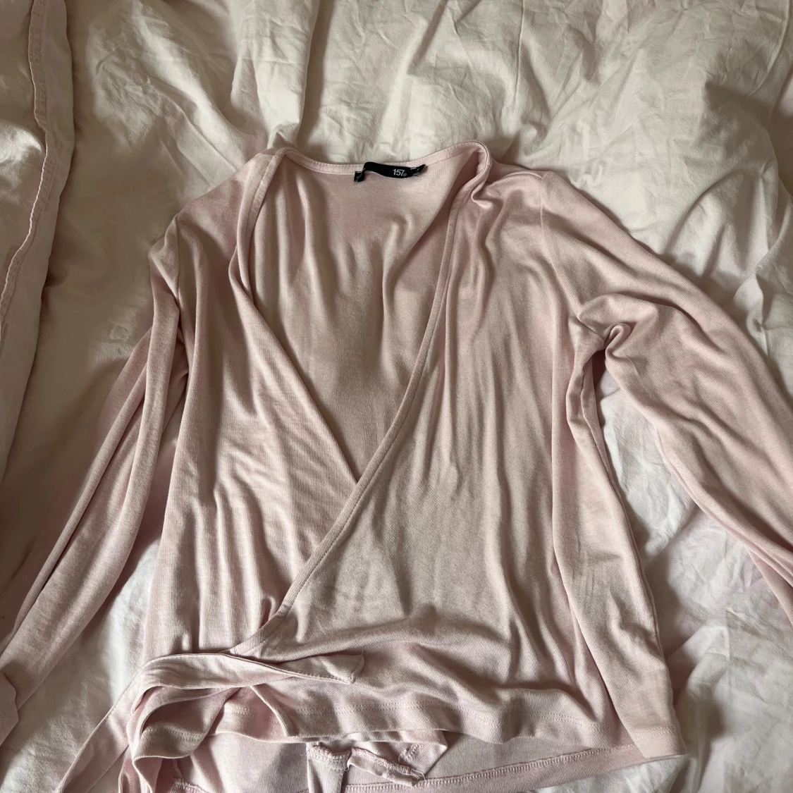 Supersöt ljusrosa omlottkofta från lager 157 med långa ärmar och knyt i midjan. Mjuk och tunn i bomullsmaterial, perfekt för vår eller sommar. Snygg att ha över ett linne eller t-shirt