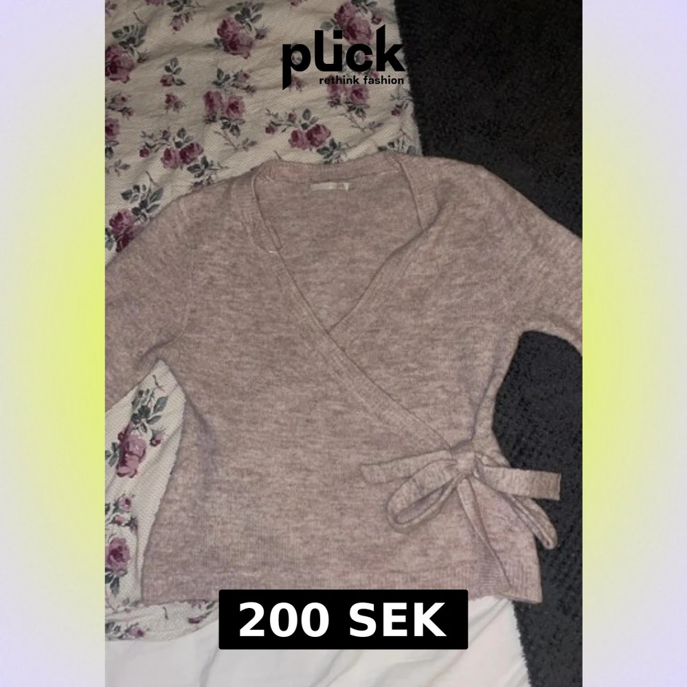 Beige omlott kofta från Lager157 med knyt i sidan och v-ringad hals. Stickad i mjukt material och har långa ärmar. Köpt för 200 kr 😁två små hål som inte syns nästan alls, de sitter bak vid axeln/nacken, men jag har aldrig märkt av de 🤗