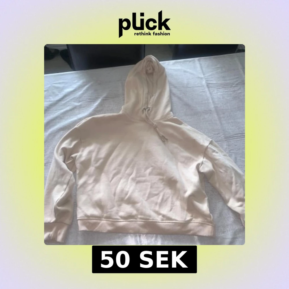 Säljer en enkel och stilren vit/rosa hoodie med huva och snörning. Tröjan har långa ärmar och ribbade muddar vid ärmslut och nederkant. Perfekt för chill dagar eller när du vill ha en clean look.
