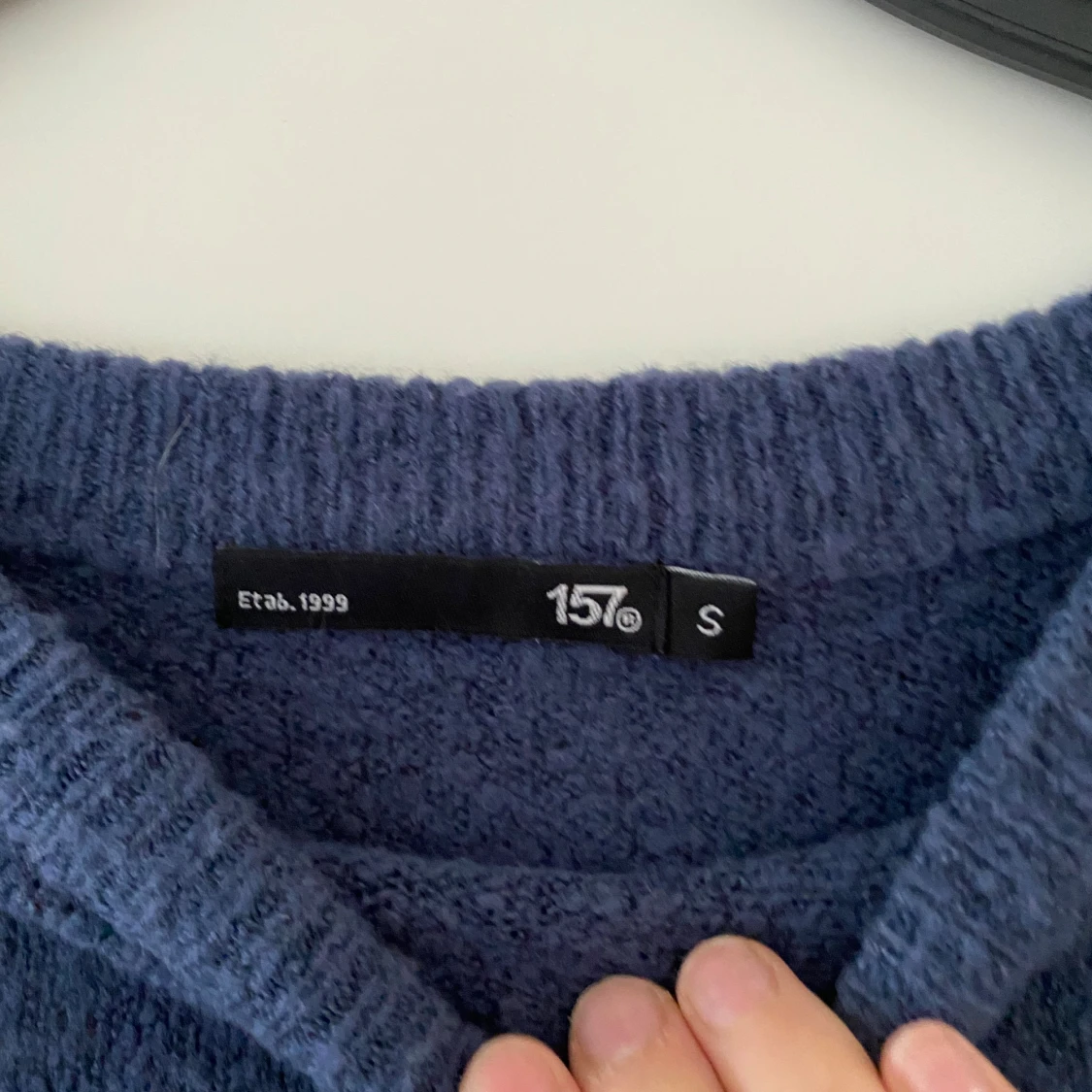 Mysig mörkblå stickad tröja från 157 med rund halsringning och avslappnad passform. Perfekt för lager-på-lager och chill dagar. Långa ärmar och ribbade muddar ger en enkel men snygg look.