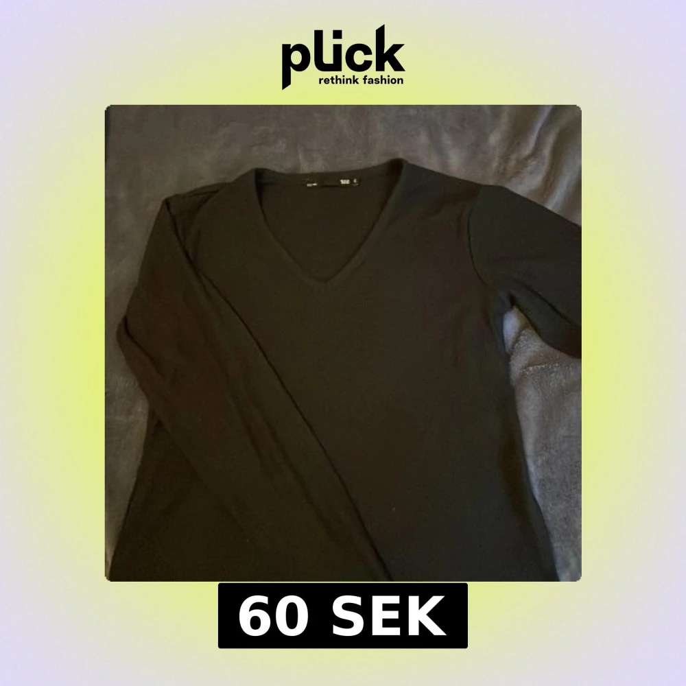 Säljer en stilren svart långärmad tröja från lager 157. Tröjan har en v-ringad hals och är perfekt för en enkel och klassisk look. Passar bra till både jeans och kjol. Perfekt för höst och vinter!