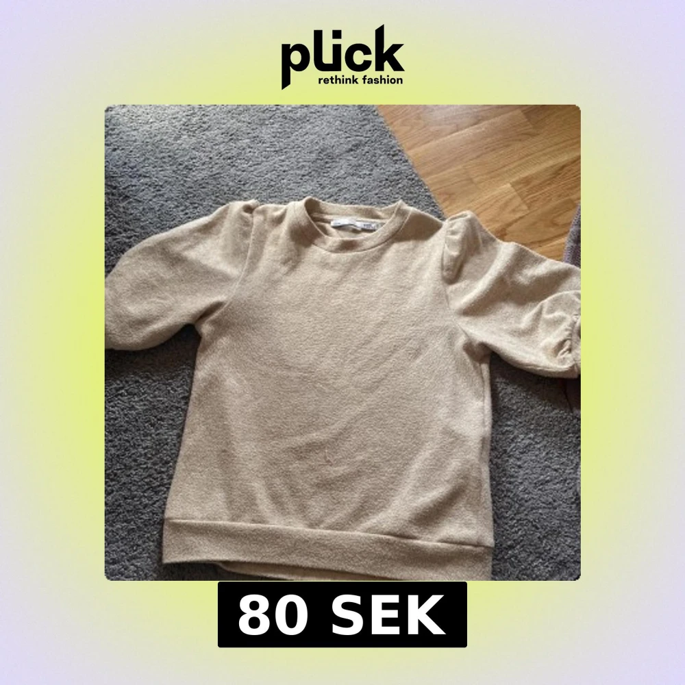 Beige tröja från 157 i storlek S med puffiga ärmar och rund halsringning. Mjuk och lite fluffig yta, perfekt för dig som gillar en enkel men trendig look. Passar till jeans eller kjol för en chill stil.