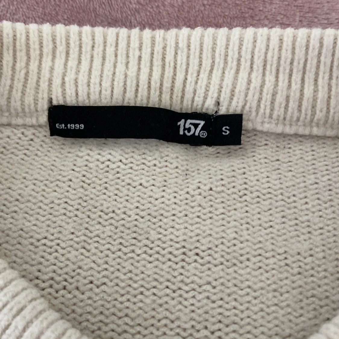Beige stickad tröja från Lager 157 i storlek S. Tröjan har långärmad design, ribbade muddar och nederkant samt en liten slits på sidan. Perfekt för lager-på-lager och enkel att matcha med jeans eller kjol. Tips häng upp istället för att vika in i garderob för att förhindra att tröjan skrynklar sig 🫶🏻