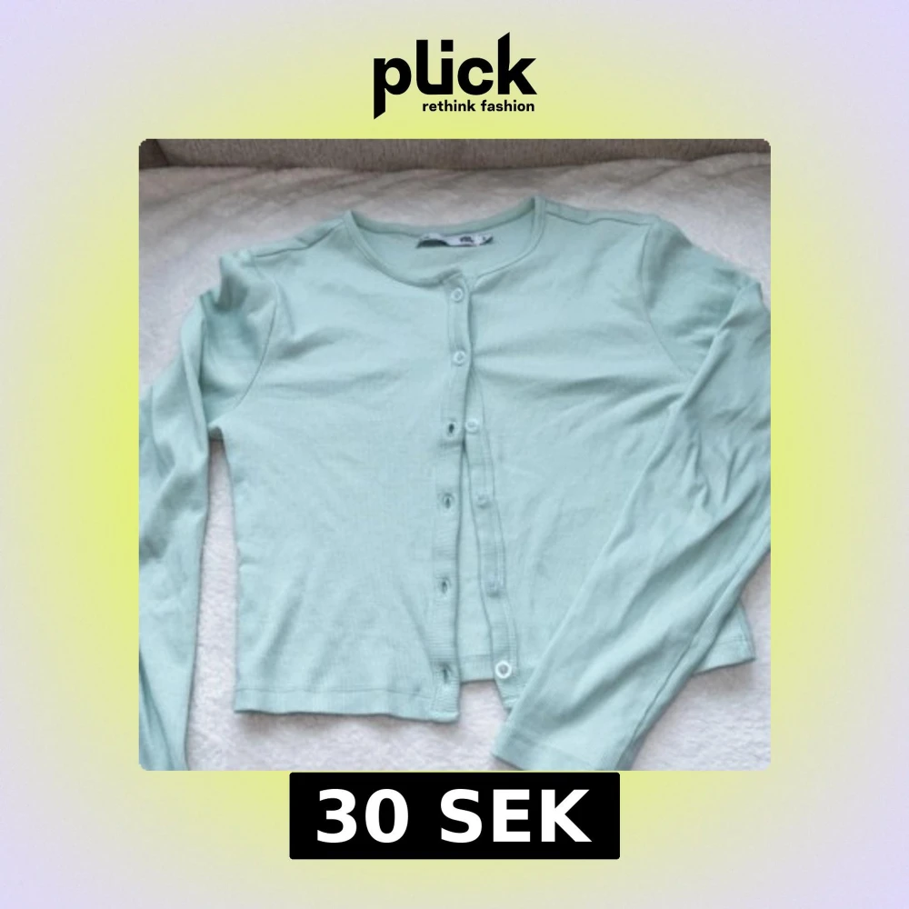 Säljer en ljusgrön ribbad kofta från Lager157. Den har långa ärmar och knappar framtill. Perfekt för lager-på-lager-stil. Passar till både jeans och kjol.