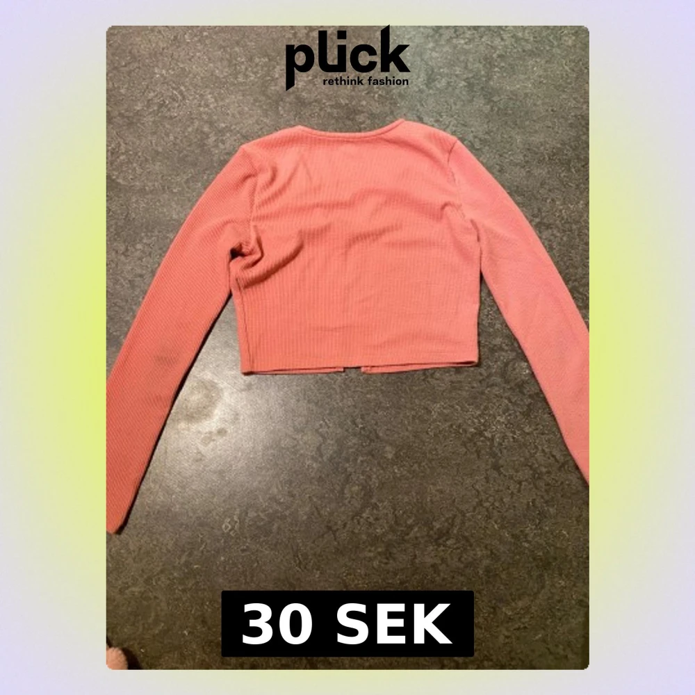 Säljer en croppad kofta i ljusrosa från 157 med ribbad struktur. Koftan har lång ärm, v-ringning och en knapp framtill. Perfekt för dig som gillar en enkel och stilren look med lite edge.