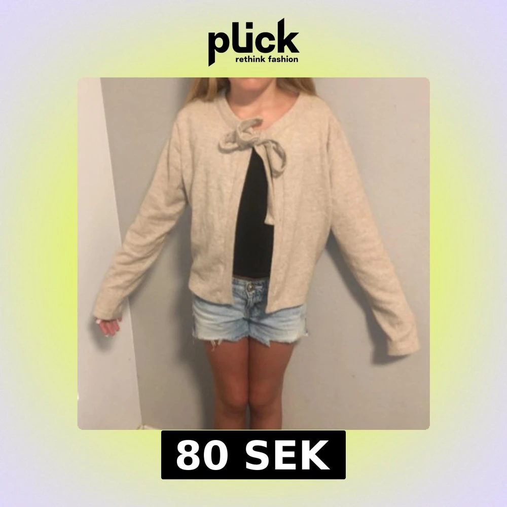 Superfin beige kofta från 157 i mjukt material. Den har långa ärmar och en söt knytning vid halsen som ger en chill och trendig look. Perfekt att slänga över en topp eller klänning när det är lite kyligt ute.
