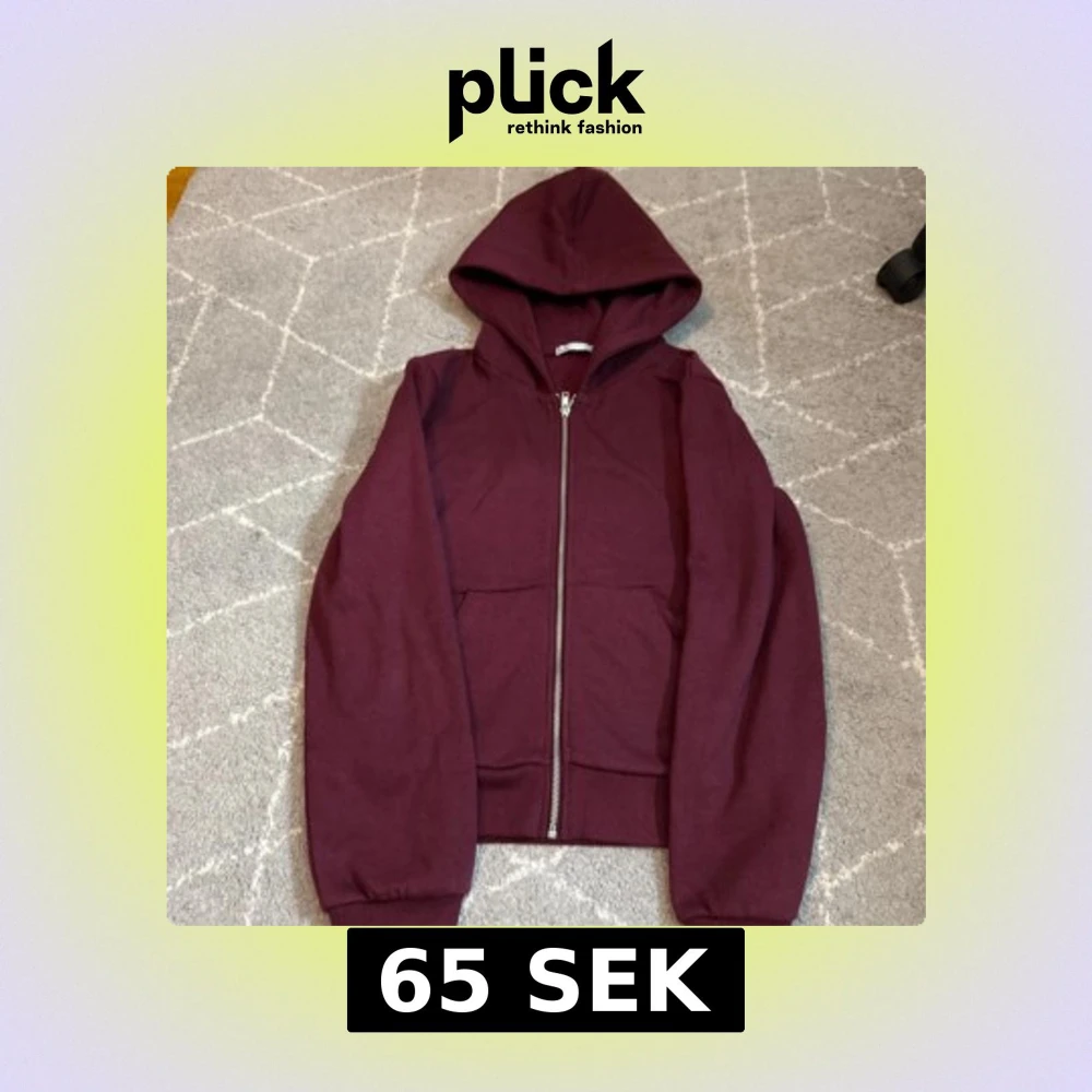 Säljer en vinröd hoodie med dragkedja och huva. Perfekt för kyliga dagar. Använd 1 gång.