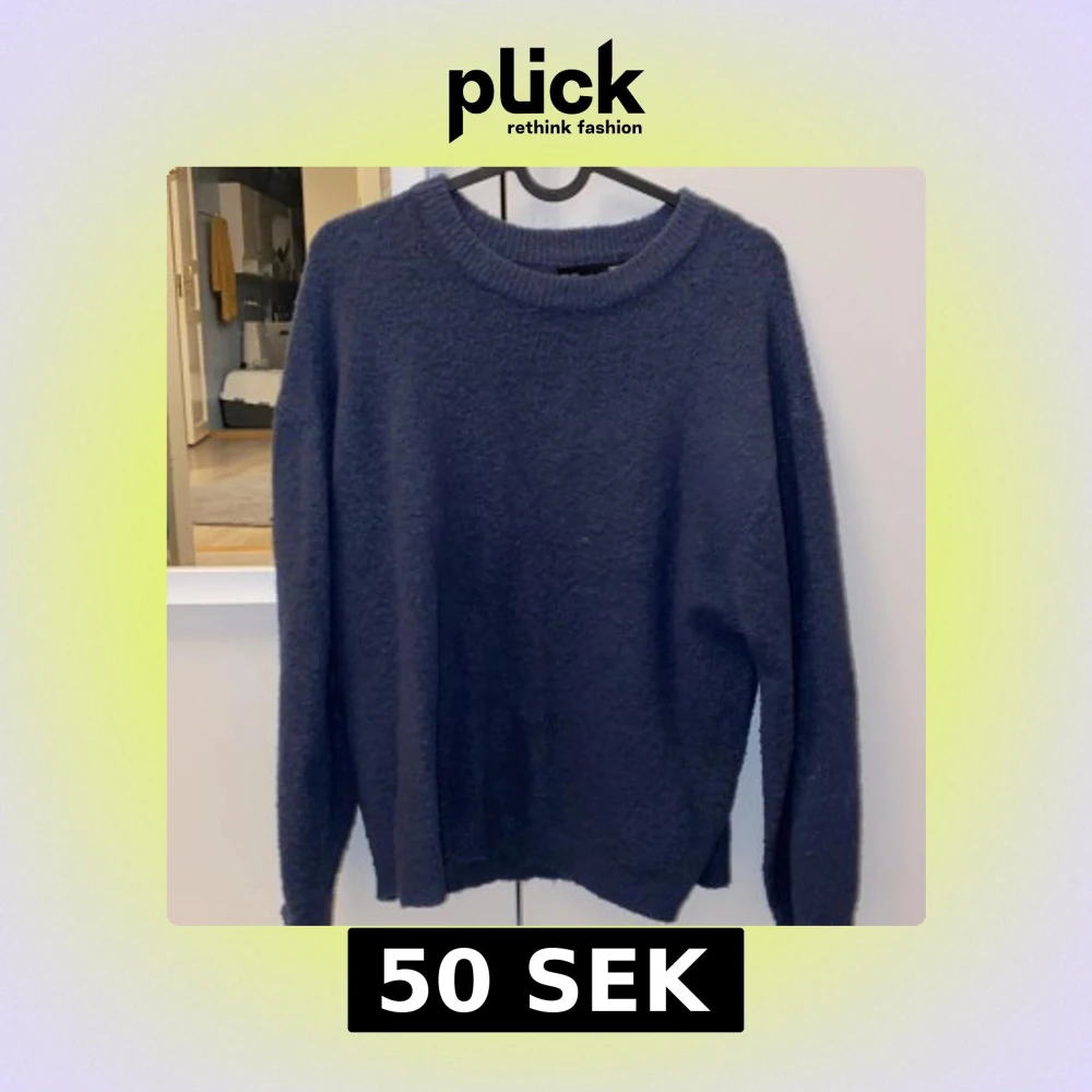 Mysig mörkblå stickad tröja från 157 i storlek XS. Tröjan har rund halsringning, ribbade muddar och långärmad passform. Materialet är mjukt och fluffigt, perfekt för kyliga dagar. Enkel och stilren design som är lätt att matcha med dina favoritjeans.