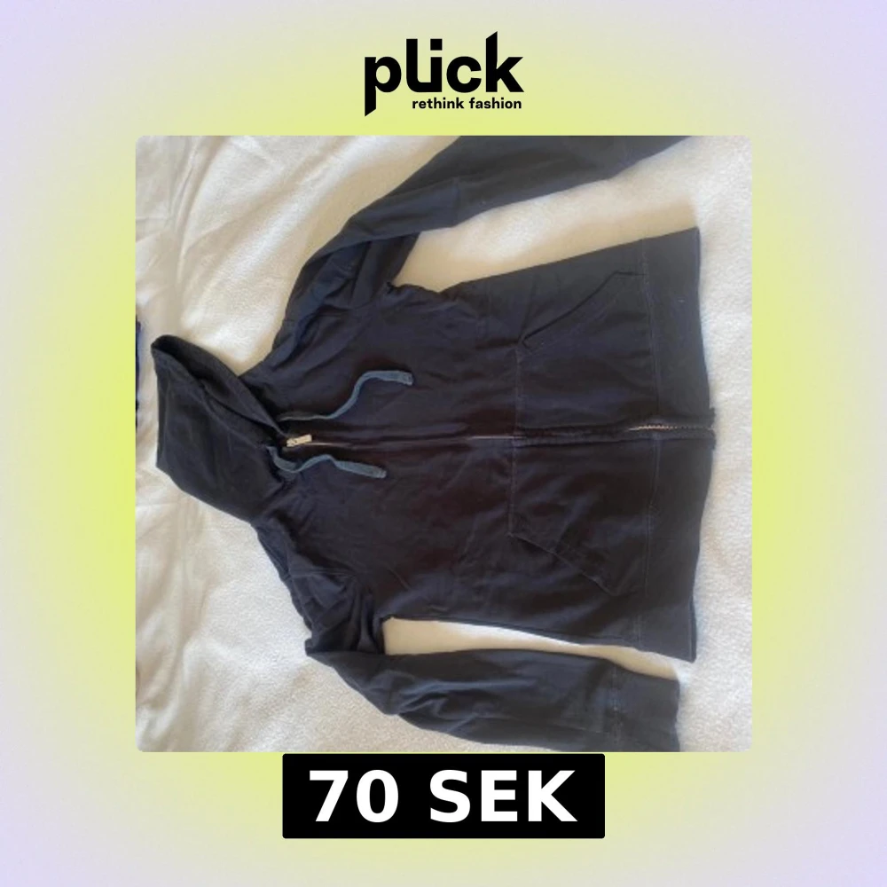 Svart hoodie med huva och snörning, hel dragkedja framtill och två fickor. Mjuk bomullskänsla och ribbade muddar vid ärmslut och nederkant. Perfekt för chill dagar eller när du vill ha något bekvämt och enkelt.