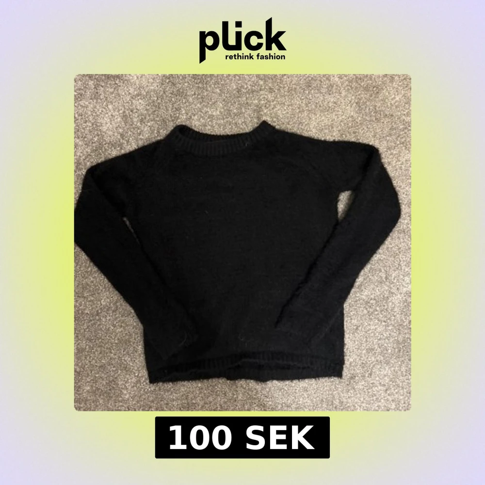 Säljer en mysig svart stickad tröja med långa ärmar. Perfekt för kyliga dagar och enkel att matcha med olika outfits. Tröjan har en klassisk design med ribbstickade muddar vid ärmslut och nederkant.