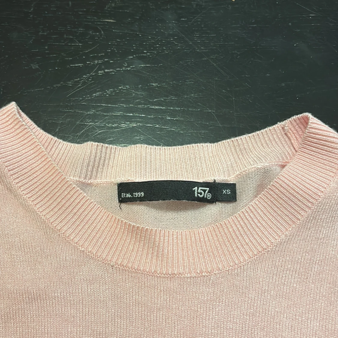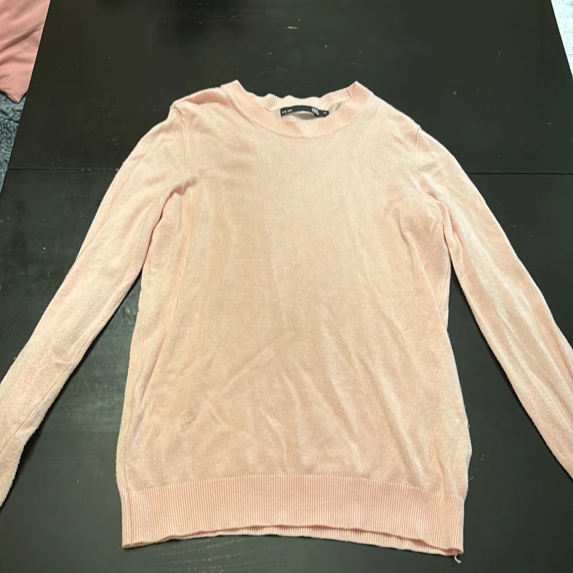 Säljer en ljusrosa stickad tröja från 157 i storlek XS. Tröjan har rund halsringning, långa ärmar och ribbade muddar vid ärmslut och nederkant. Perfekt för lager-på-lager och enkel att matcha med jeans eller kjol.