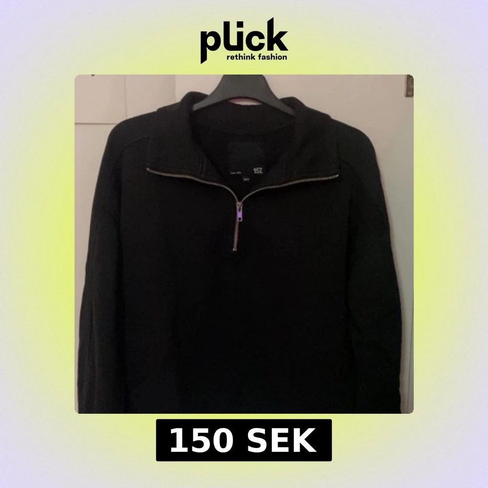 Svart sweatshirt från 157 med halv dragkedja och hög krage. Tröjan har lång ärm och en clean, enkel look som funkar till jeans eller mjukis. Materialet känns mjukt och är troligtvis bomull eller polyester. Perfekt för chill dagar eller när du vill vara bekväm.