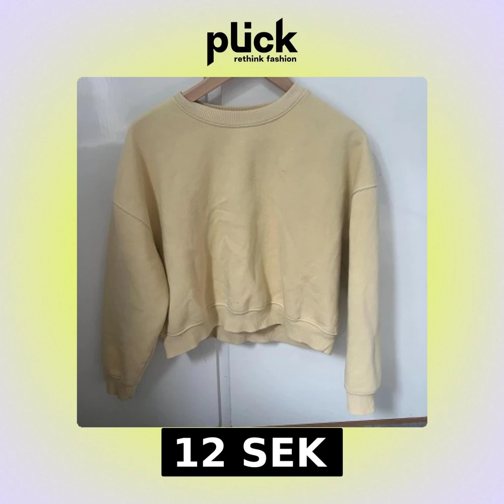 En enkel och oversized ljusgul sweatshirt från 157 med rund hals och ribbade muddar. Mjuk insida och avslappnad passform, perfekt för chill dagar. Tillverkad i bomullsmix och passar dig som gillar basic och comfy stil. Har tre fläckar som inte går bort
