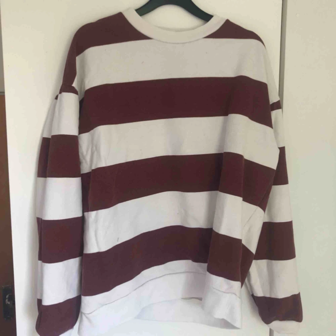 Randig tjocktröja från lager 157, köpt i sommras men knappt använd. Några små fläckar fram (bild 3) men märks knappt