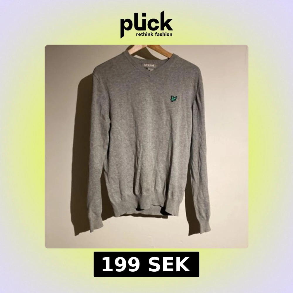 Snygg grå stickad tröja från Lyle & Scott med klassisk v-ringning och broderad logga på bröstet. Tröjan har ribbade muddar och är långärmad, perfekt för lager-på-lager under hösten och vintern. Står M men sitter mer som S. Hör av dig vid minsta fundering!