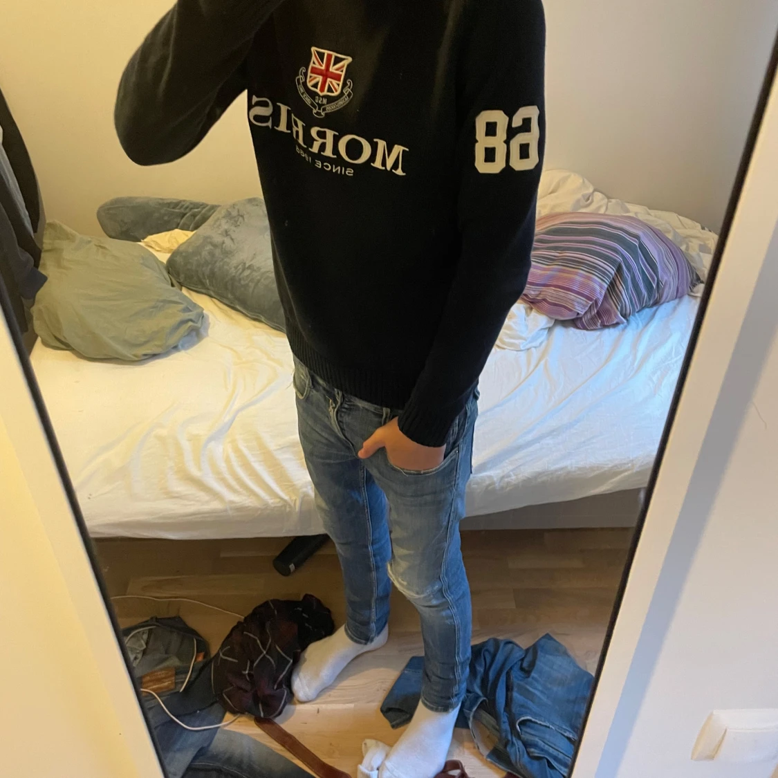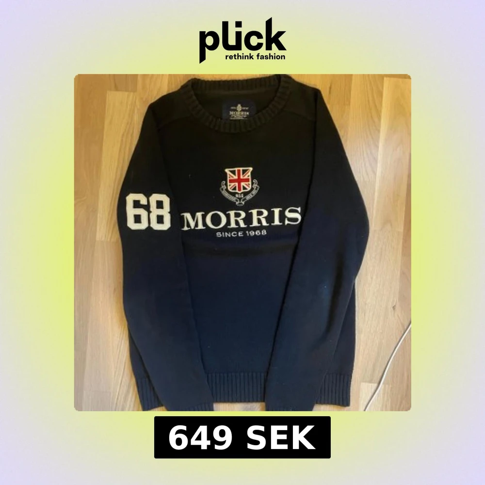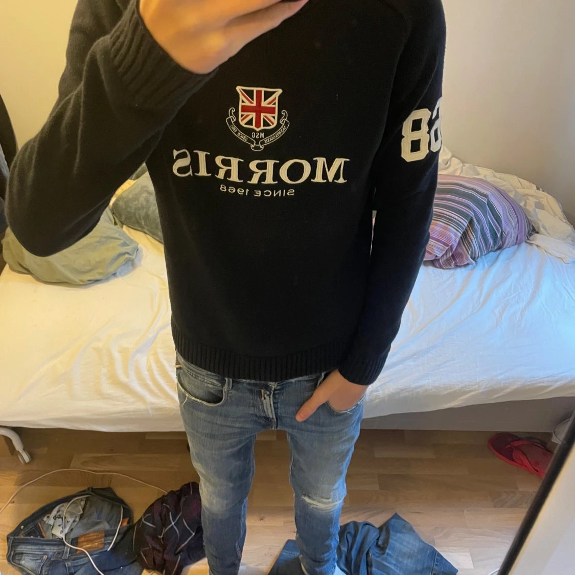 Svart stickad tröja från Morris med broderad logga och brittisk flagga på bröstet samt siffran 68 på ärmen. Helt ny skick inga defekter, riktigt fet🙌