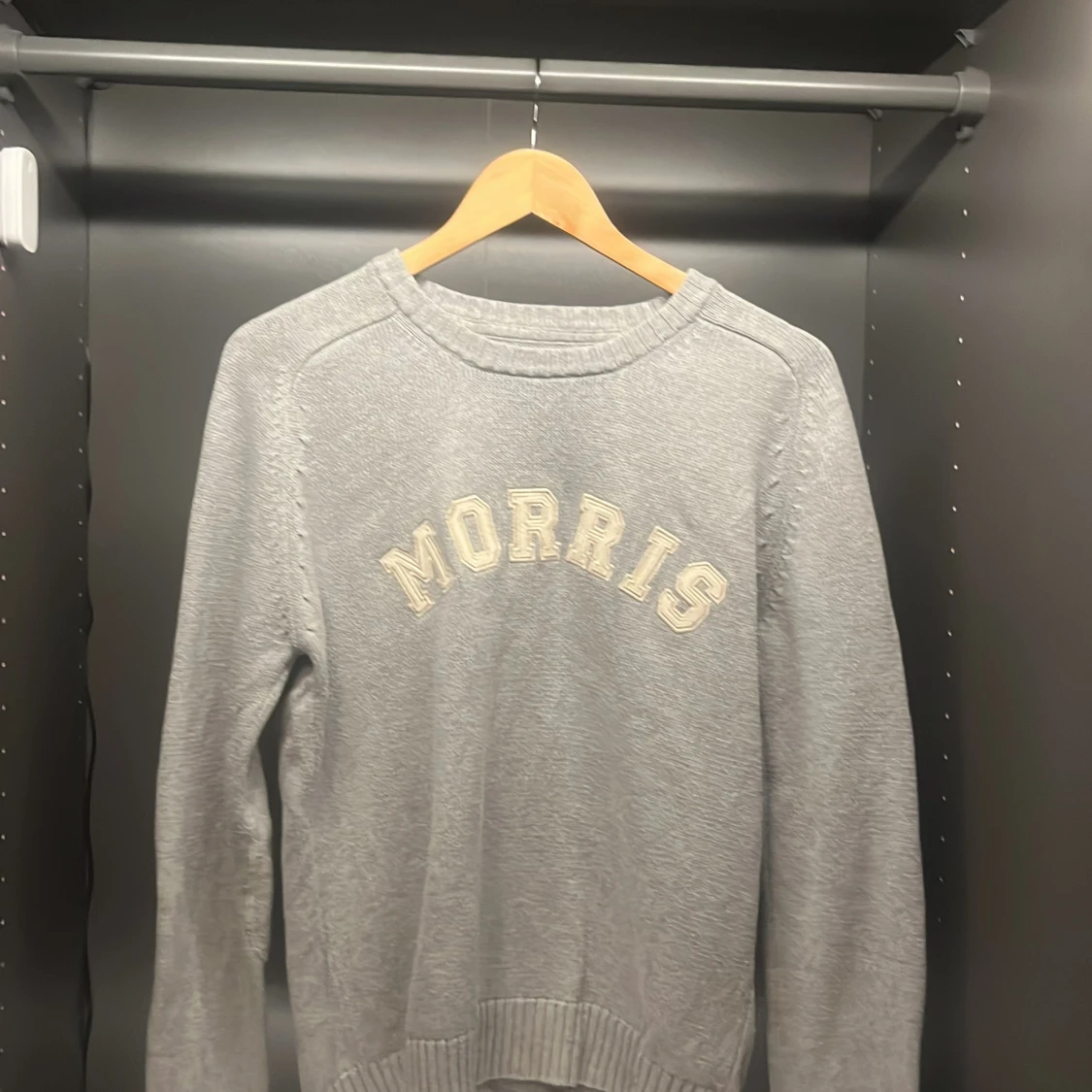 Snygg grå stickad tröja från Morris med broderad logga i vitt framtill. Tröjan har rund halsringning, ribbade muddar och lång ärm. Perfekt för dig som gillar klassisk och stilren look med en sportig touch med väldigt snygga detaljer.