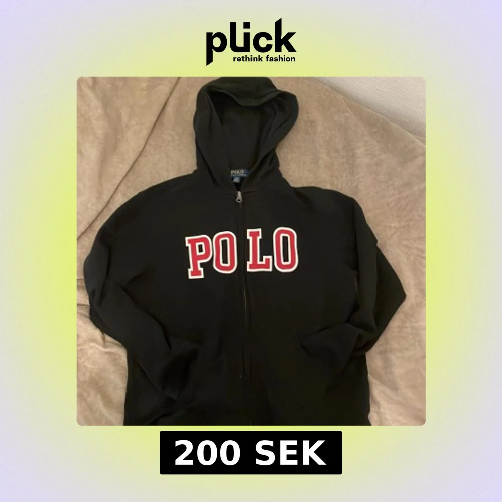Svart hoodie från Polo Ralph Lauren med stor vit och röd POLO-logga på bröstet. Tröjan har dragkedja framtill, huva och långa ärmar. Perfekt för en chill och sportig look. Lite liten i storleken, pris kan diskuteras😀 hör av er om några frågor mvh Axel🤩