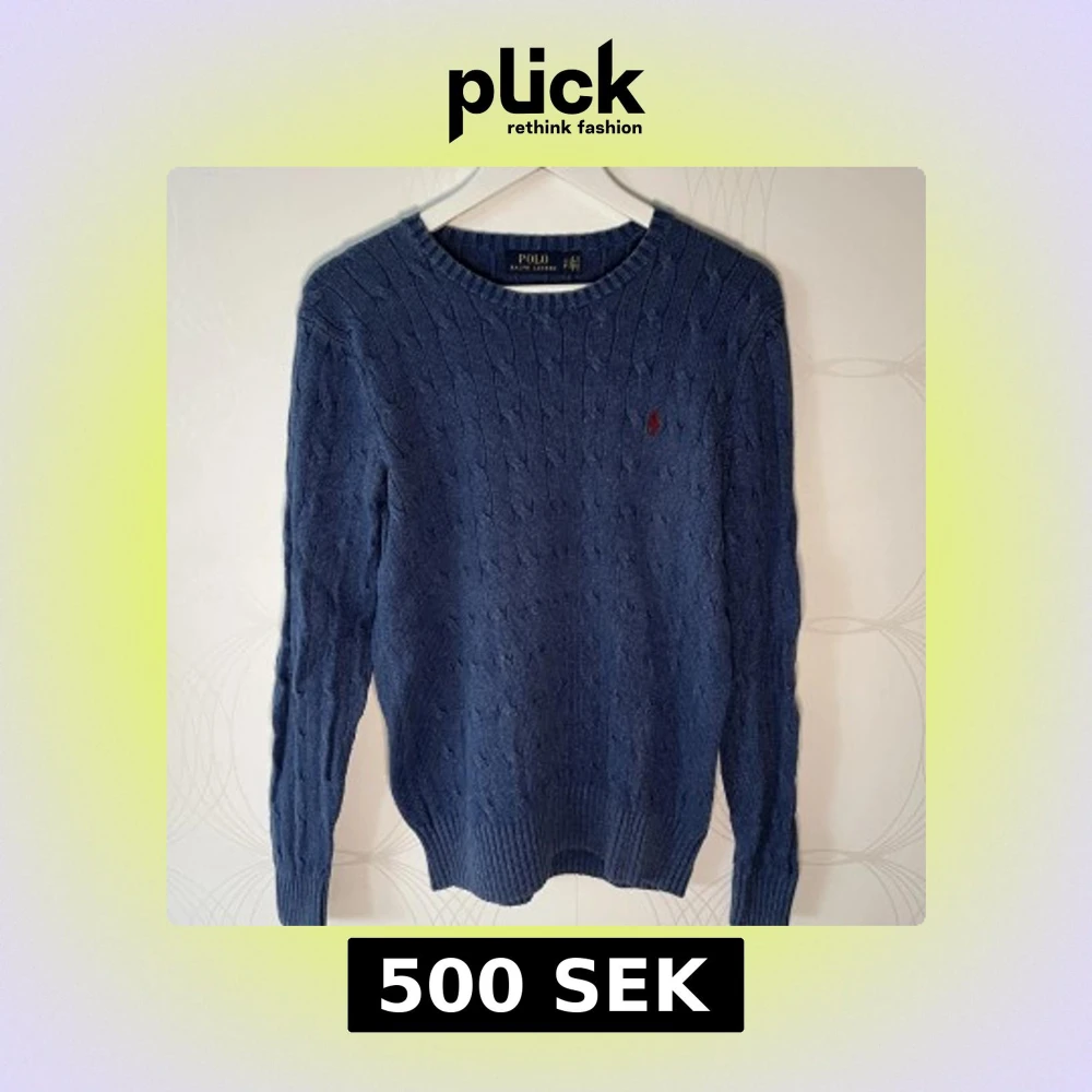 Ljusblå kabelstickad tröja från Ralph Lauren med röd broderad logga på bröstet. Använd men i bra skick. Storlek "S P" enligt märkning vilket står för Small Petite. Hör av dig PM vid intresse!