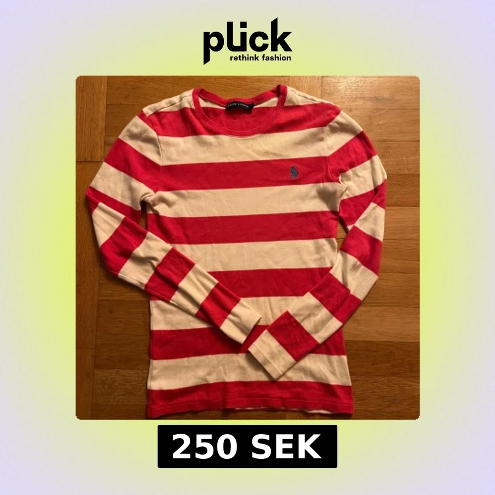 Säljer en snygg långärmad tröja från Ralph Lauren i rött och vitt med breda ränder i storlek S. I riktigt bra skick, är öppen för förhandling.