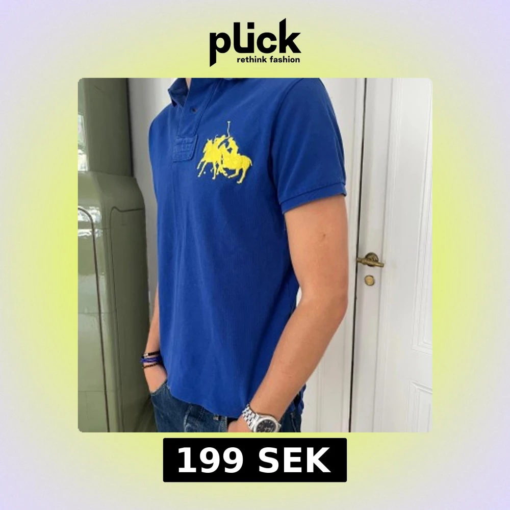 Snygg blå pikétröja från Polo Ralph Lauren i bomull. Tröjan har klassisk krage, korta ärmar och stor gul broderad polospelare på bröstet samt en gul siffra 3 på ärmen. Custom fit-modell som sitter riktigt bra. 💸 Nypris: ca 1300 kr 🚚 Snabb frakt! Skickas inom 1–2 dagar ✅ Inga fläckar, hål eller synliga tecken på slitage. 💬 Skriv gärna vid frågor – jag svarar snabbt!