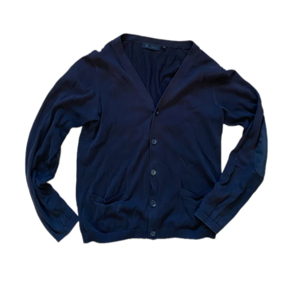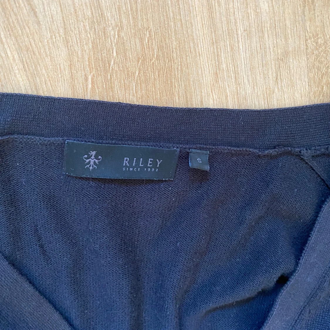 Snygg mörkblå kofta från Riley med klassisk v-ringning och knäppning framtill. Tröjan har två fickor och diskret broderad logga på ena sidan. Perfekt för lager-på-lager och passar till det mesta. Tillverkad i mjukt stickat material.