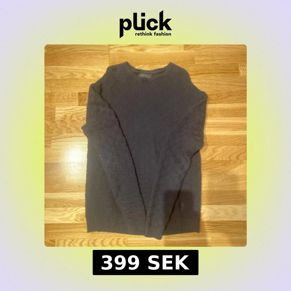 Säljer en svart stickad tröja från Religion med ett diskret mönster och broderad detalj. Tröjan har långa ärmar och en rund halsringning. Perfekt för kyligare dagar.
