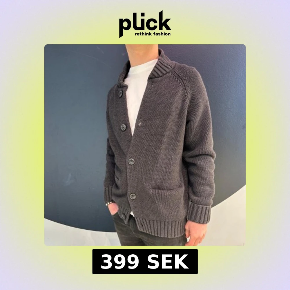 Snygg grå kofta med stora knappar och ribbade muddar. Perfekt för kyligare dagar och lätt att matcha med olika outfits. Koftan har en klassisk design med en bekväm passform.