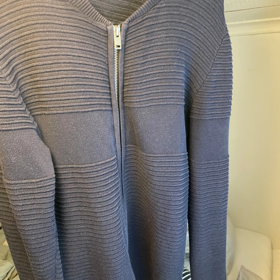 Snygg mörkblå kofta från Lindbergh med dragkedja framtill. Den har en ribbad struktur och långa ärmar, perfekt för kyligare dagar. Enkel och stilren design som passar till många tillfällen.