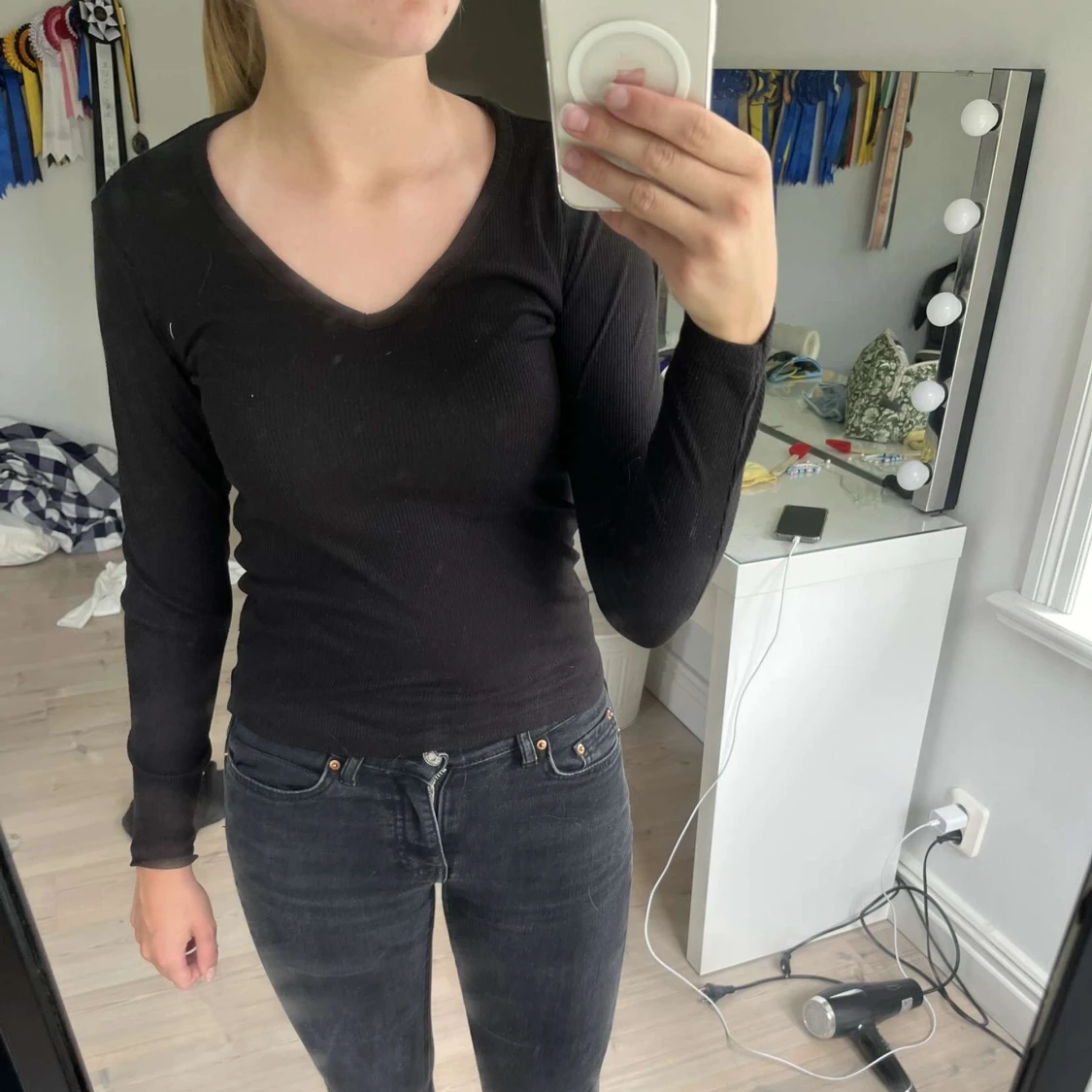 Ribbad Långärmad V-ringning Axelbrett-33 cm Längd- 50 cm