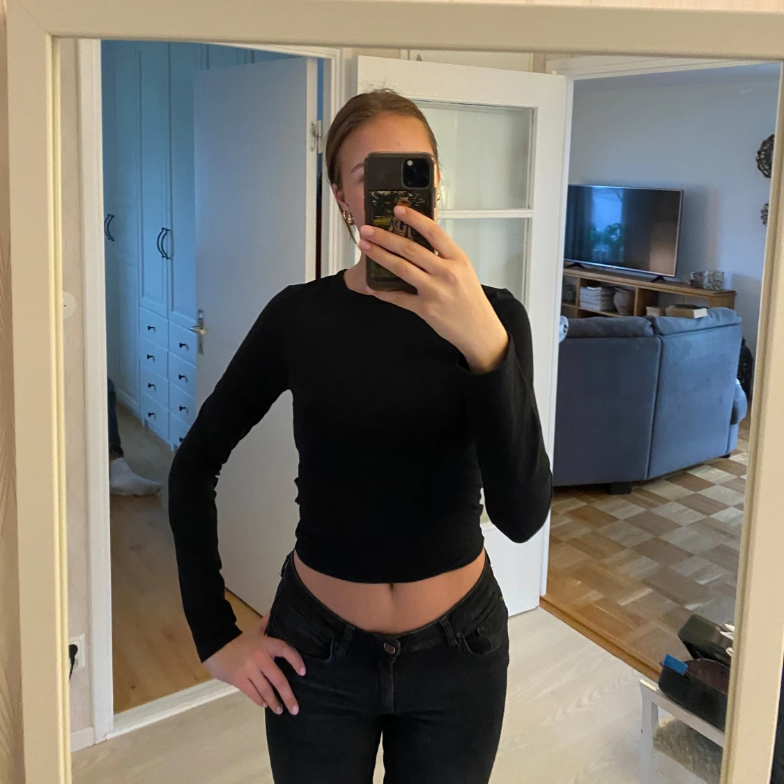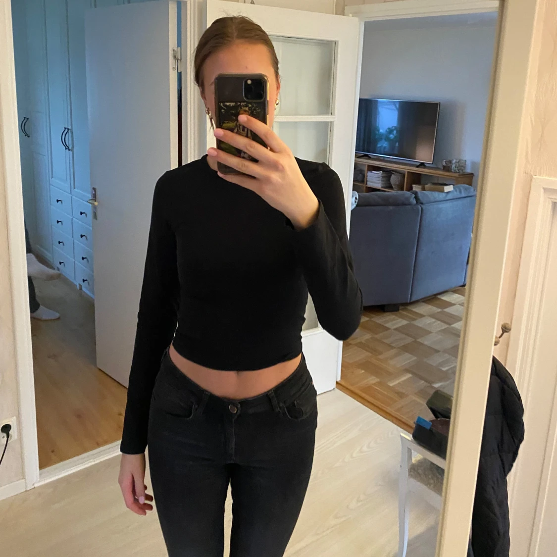 svart långärmad tröja från bikbok i storlek S. har använt ett fåtal gånger så den är i fint skick. säljer då jag inte gillar att den är kortare i magen