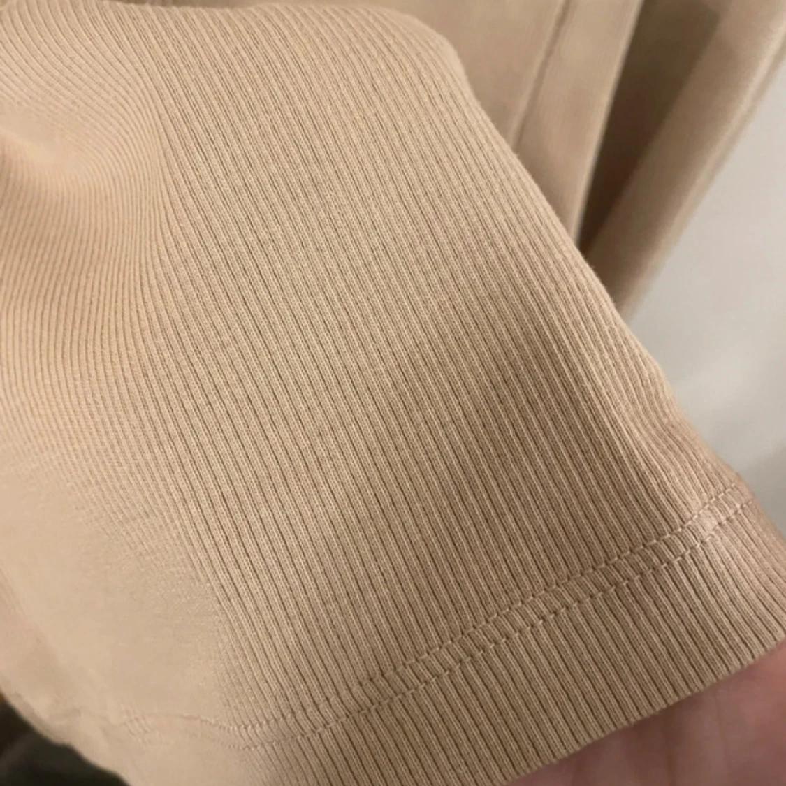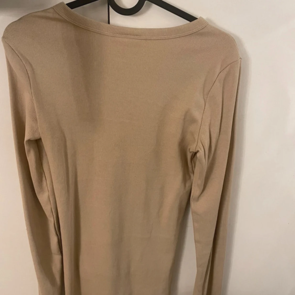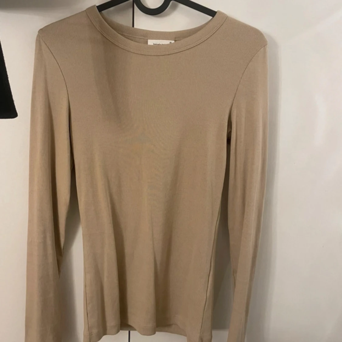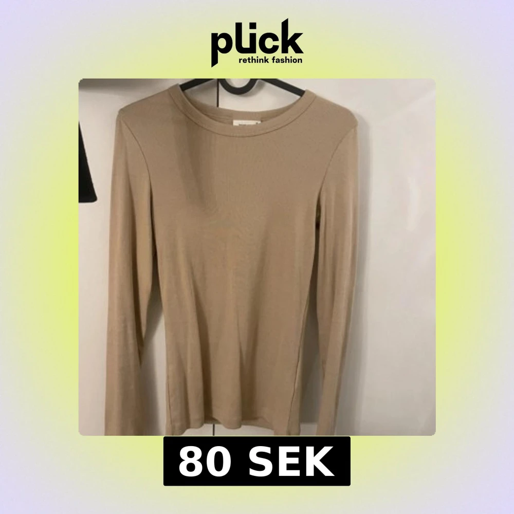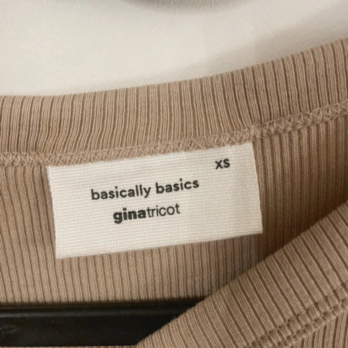 En basic beige långärmad tröja från Gina Tricot, Basically Basics-kollektionen. Tröjan är ribbad och har en rund halsringning. Perfekt att styla med jeans eller kjol för en clean look.