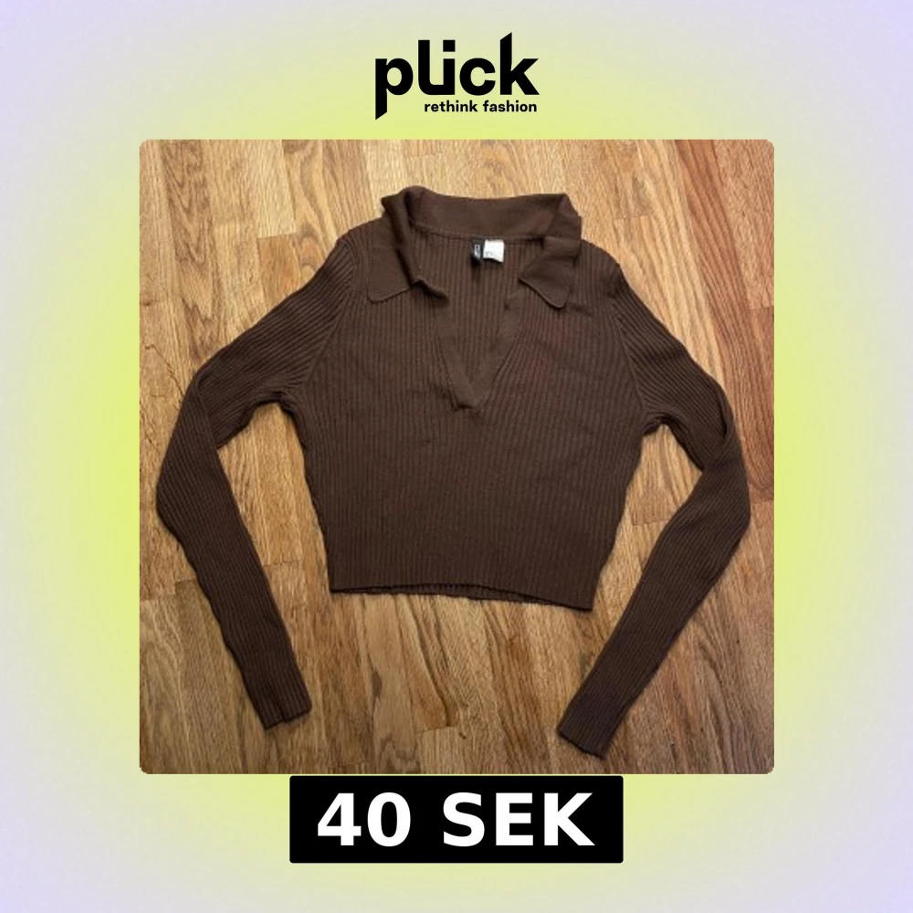 Säljer en brun ribbstickad tröja från H&M Divided. Tröjan har en croppad passform, lång ärm och en snygg krage med v-ringad hals. Perfekt för lager-på-lager och passar till både jeans och kjol.🤎