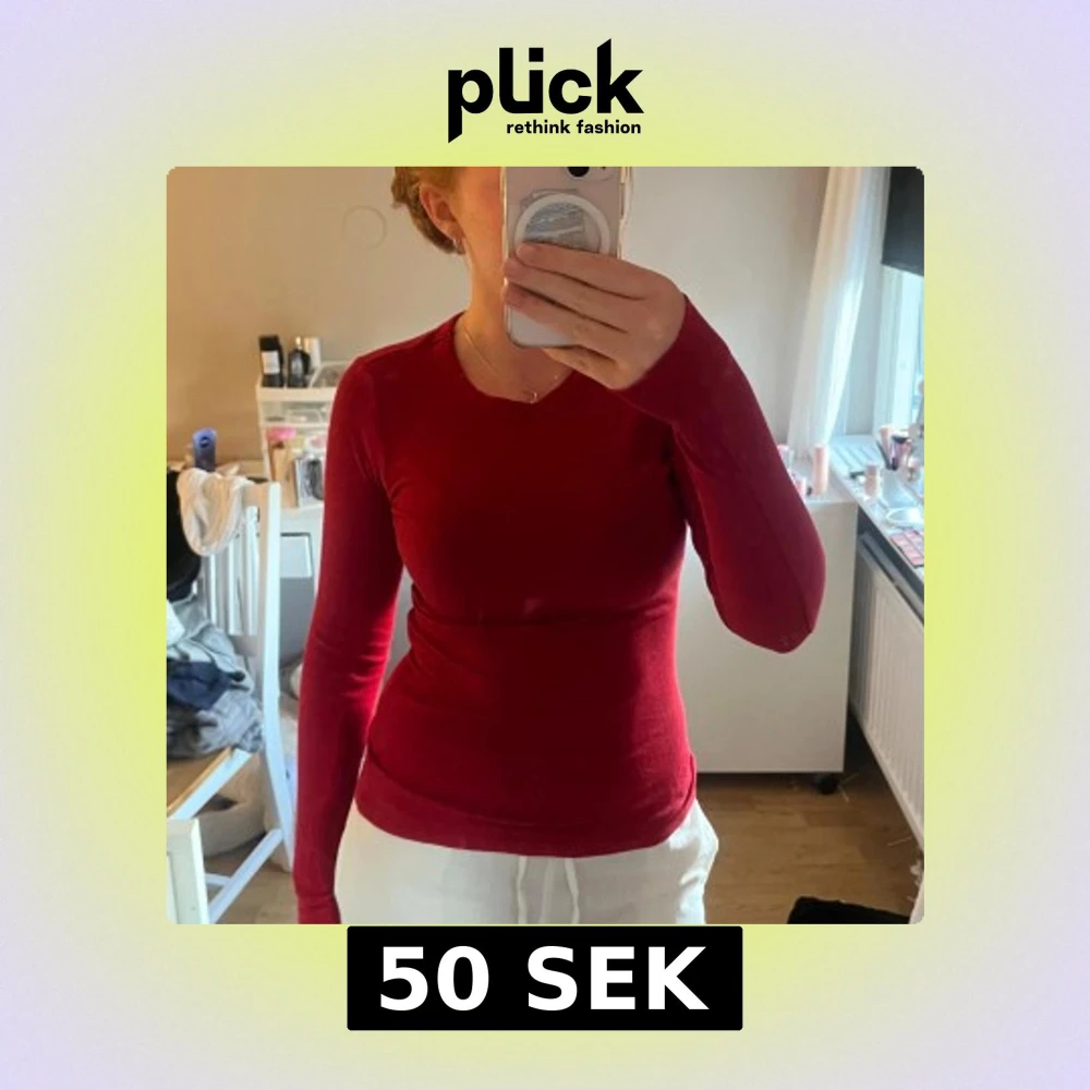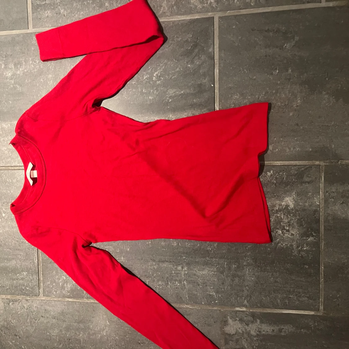 En enkel och stilren röd långärmad tröja med rund halsringning. Tröjan är figurnära och passar perfekt till vardags. Tillverkad i mjukt bomullsmaterial för en bekväm känsla. Hör av er vid frågor eller bilder.💛