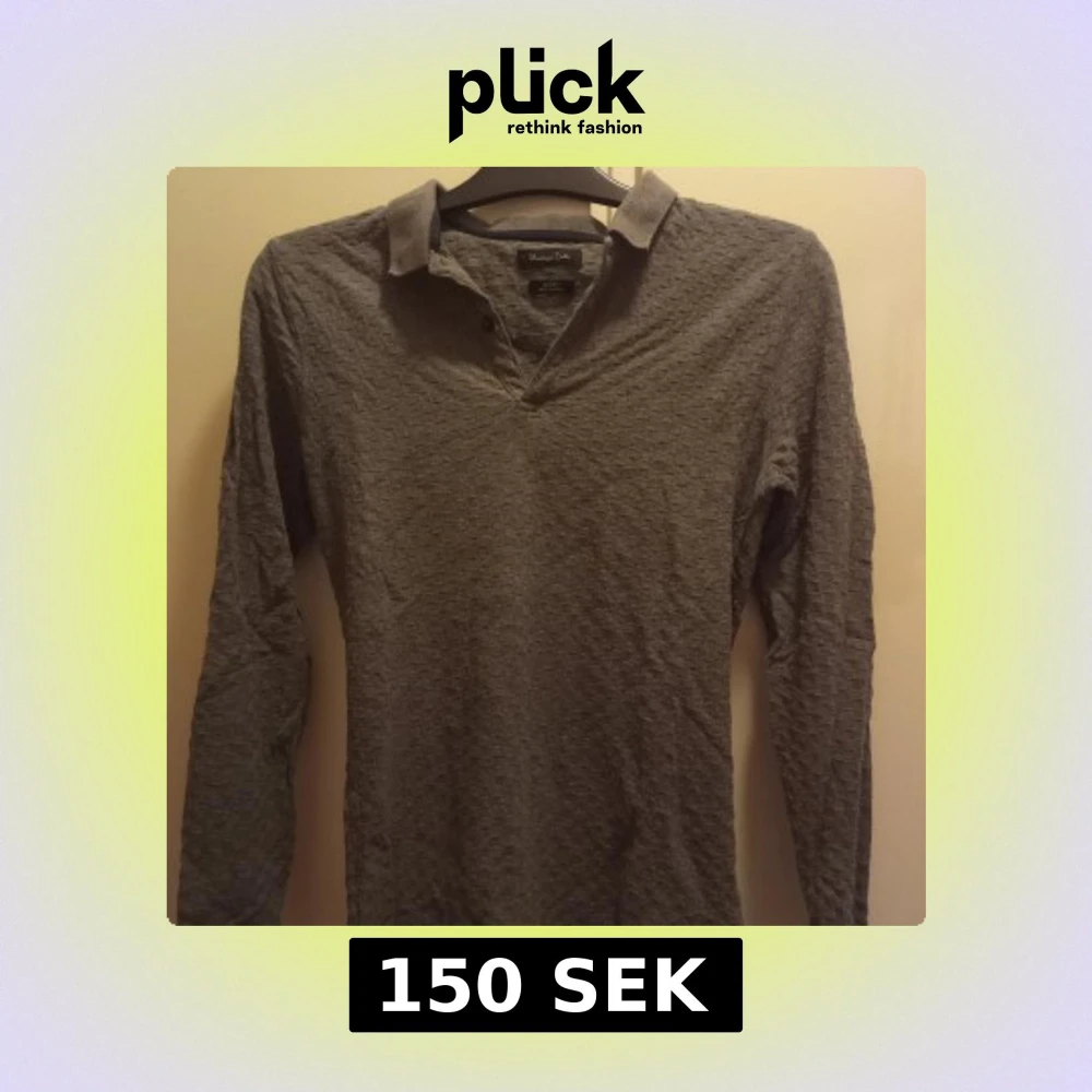 Säljer en stilren grå långärmad pikétröja från Massimo Dutti. Tröjan har en diskret textur och en klassisk krage. Perfekt för en elegant och avslappnad look.