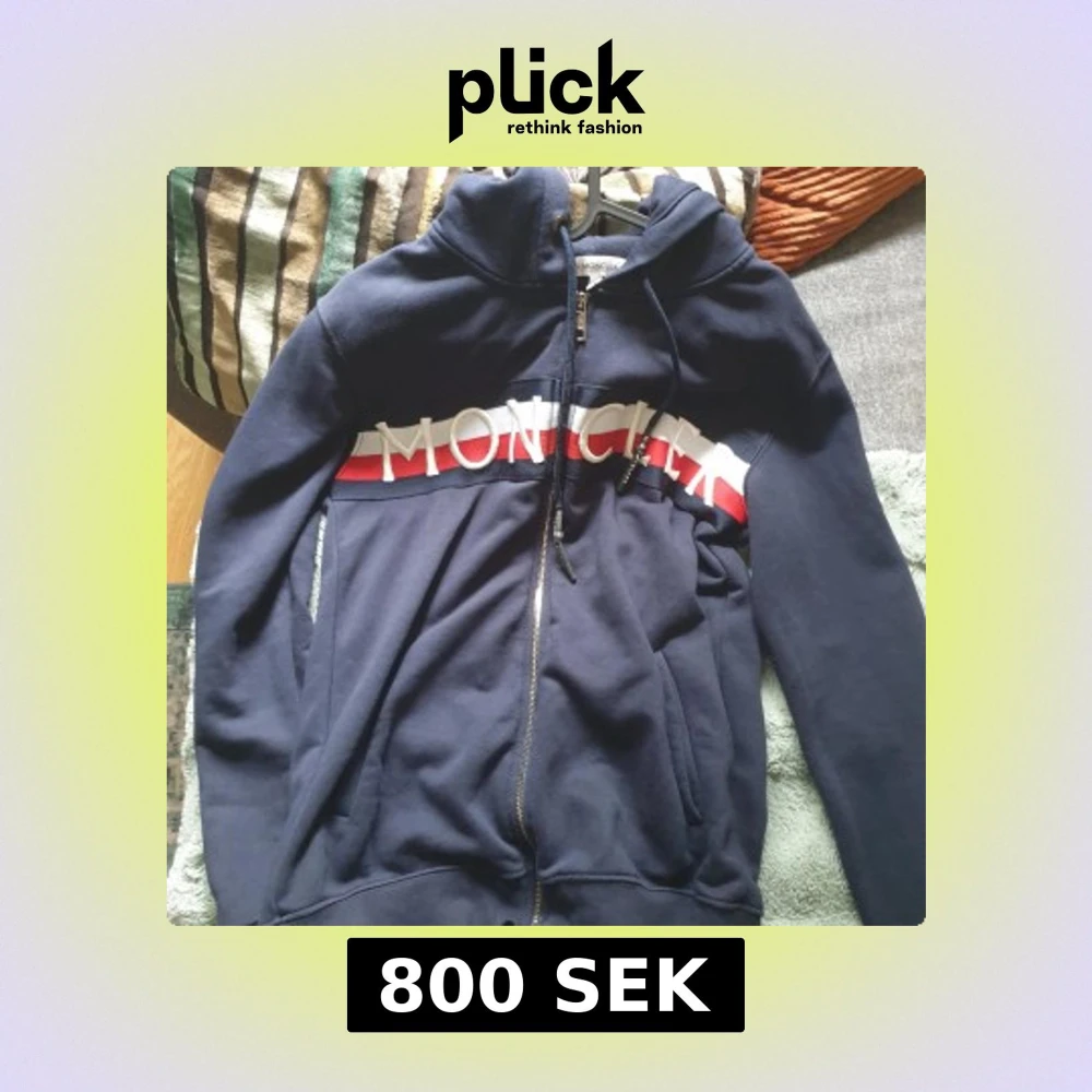 Säljer en mörkblå hoodie från Moncler då den inte passar längre, den är riktigt snygg och galet bra kvalitet, hör av er vid eventuella frågor 🙌
