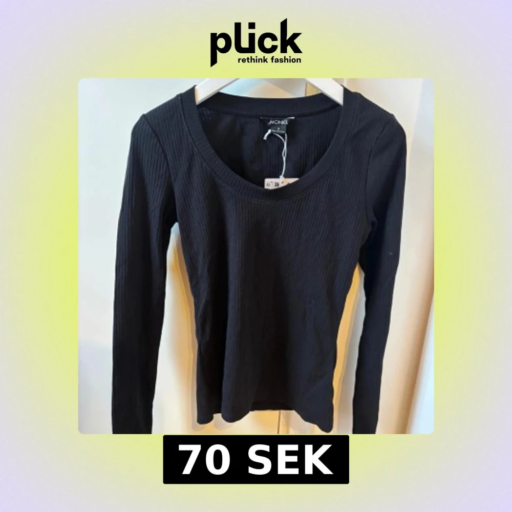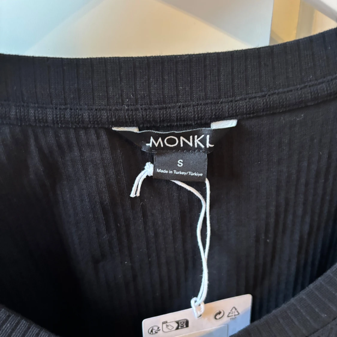 Säljer en stilren svart ribbad tröja från Monki. Tröjan har en rund halsringning och långa ärmar, perfekt för lager-på-lager eller som den är. Enkelt och snyggt basplagg för garderoben.