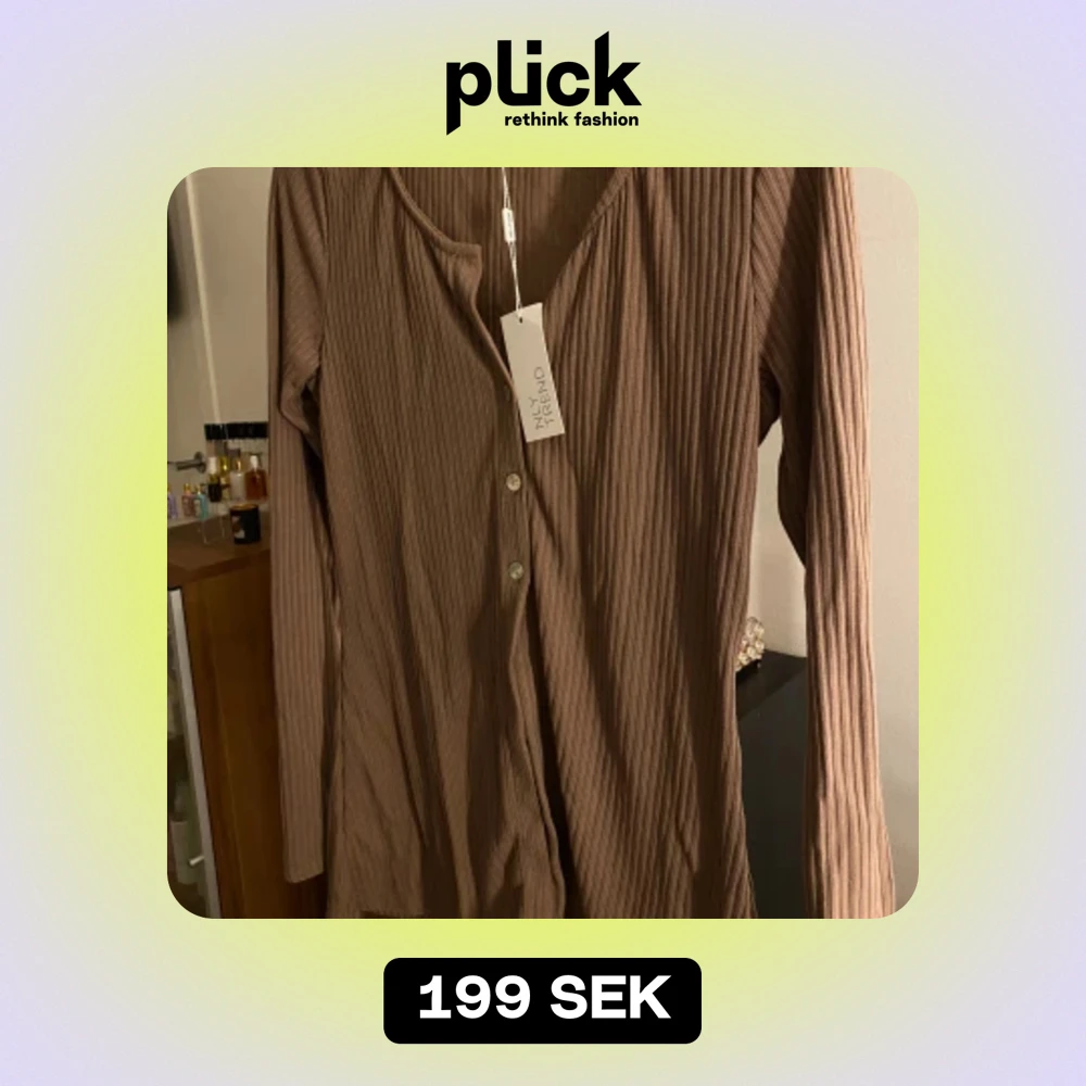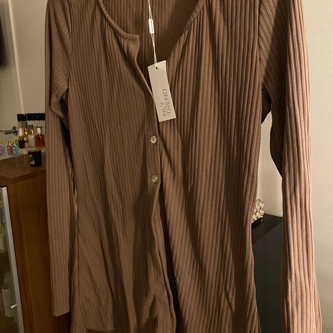Nyskick - oanvänd Köpt från Nelly Brun ribbad långärmad tröja, knappar med liten slits vid magen.